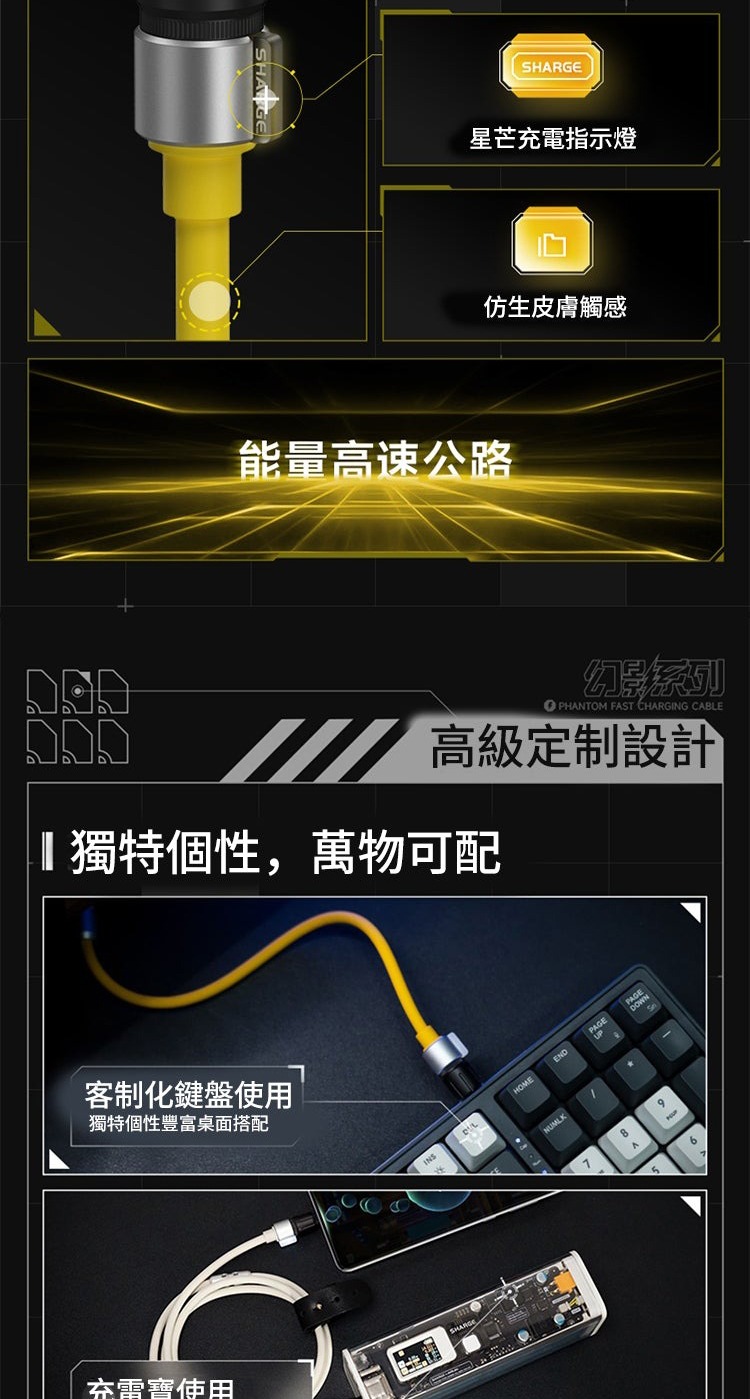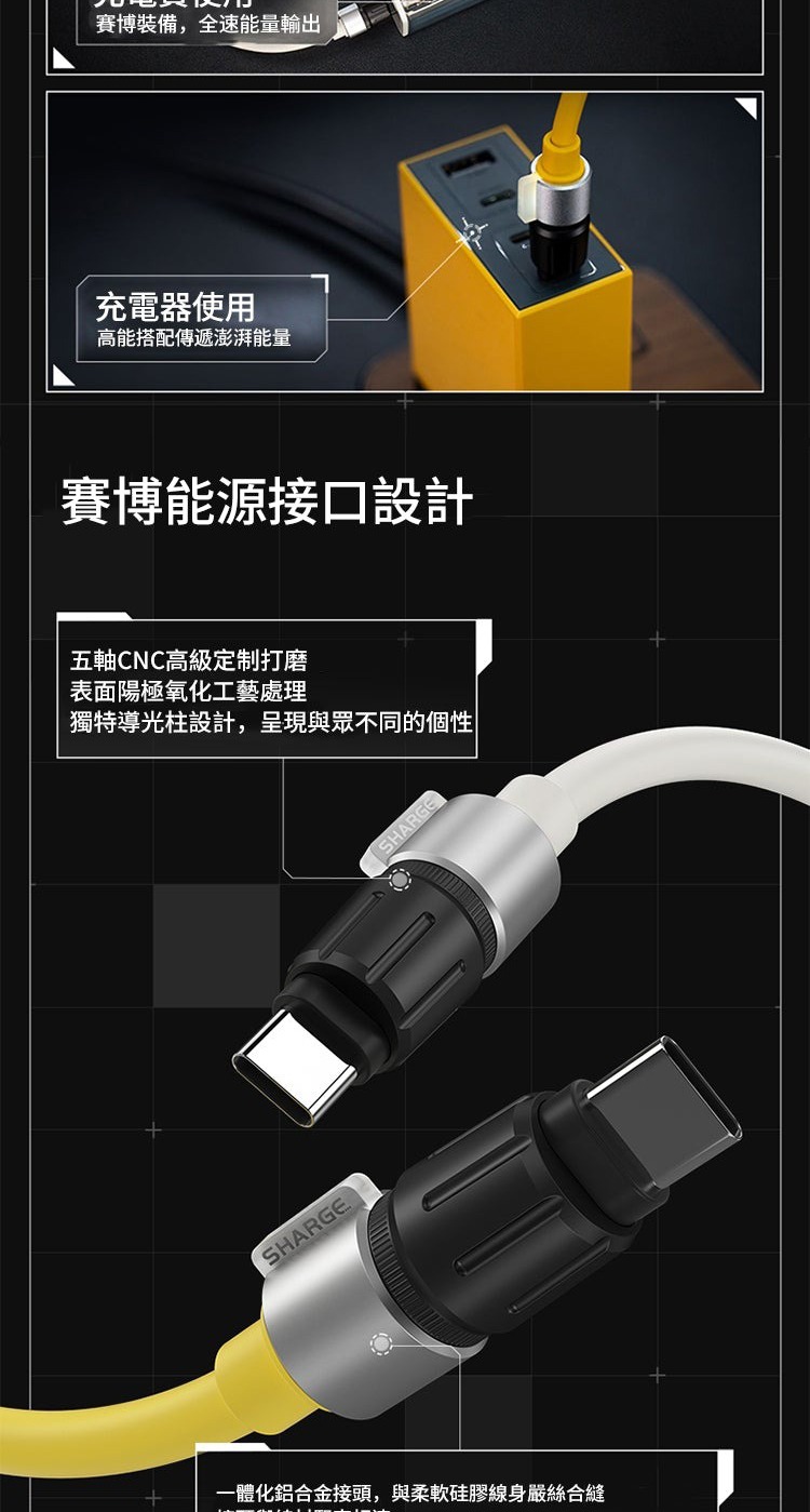 • Shargeek SL106 240W USB-C to USB-C High Speed Phantom Cable 1.2m E-Marker Chip with LED Light