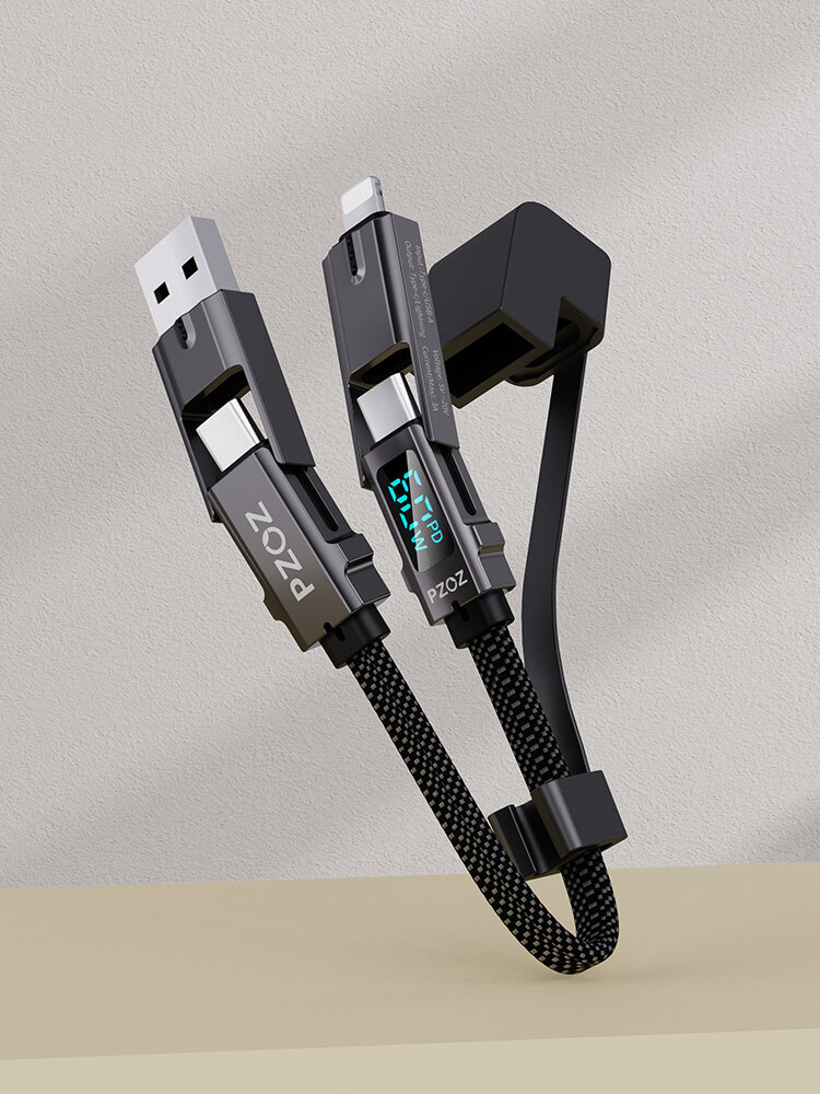 PZOZ 4 in 1 60W PD USB C Cable Digital Display Fast Charging For iPhone 15 14 13 Pro Max Xiaomi Samsung Huawei MacBook iPad USB Type C Cord Charger