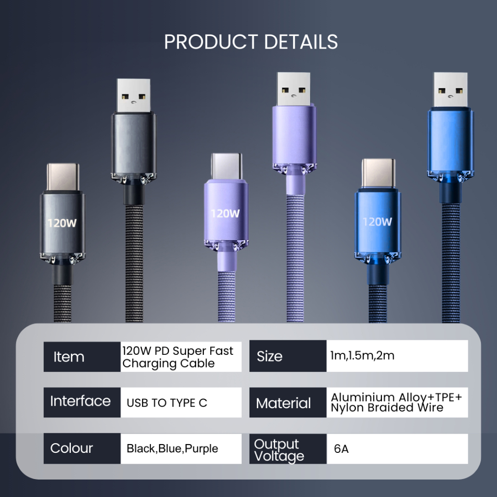 mixshop 120W PD Super Fast Charging Cable,Type C Cable, 1m/1.5m/2m [SG READY STOCK]