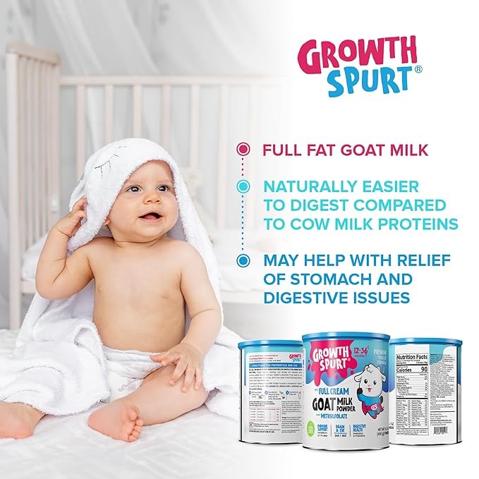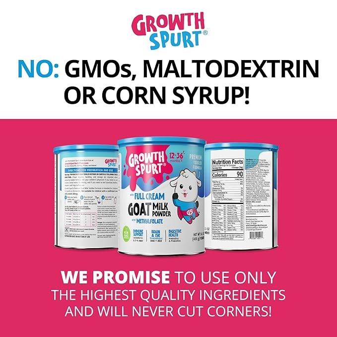 Growth Spurt Goat Milk Toddler Formula – Powdered Goat's Milk Toddler Formula – Lactoferrin, 2'-FL HMO, Prebiotics, Probiotics, Iron, DHA & ARA, Immune Support, Non GMO Infant Baby (12 Pack)